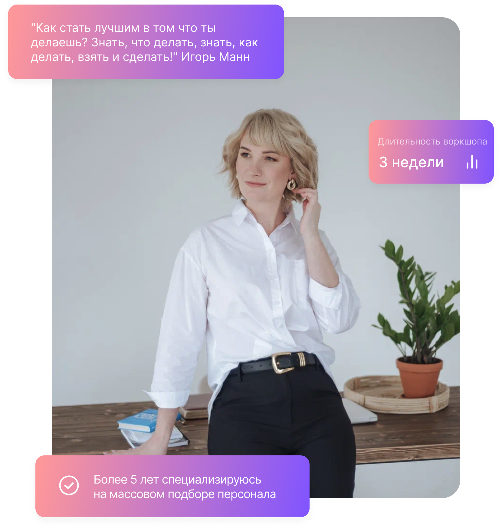 Благодаря полученным у вас знаниям значительно усилилась компетенция не только одного сотрудника, но и всего hr отдела, вакансии у нас закрываются в 2, а то и в 3 раза быстрее и качественнее, а ваша авторская система рекрутинга в Телеграм не только более эффективнее, чем любые работные сайты, но и значительно сэкономила наш бюджет на подбор. Также ваша система мониторинга рынка не только позволяет объективно оценить положение вакансии на рынке труда, но и делать вакансии более конкурентными и качественными.